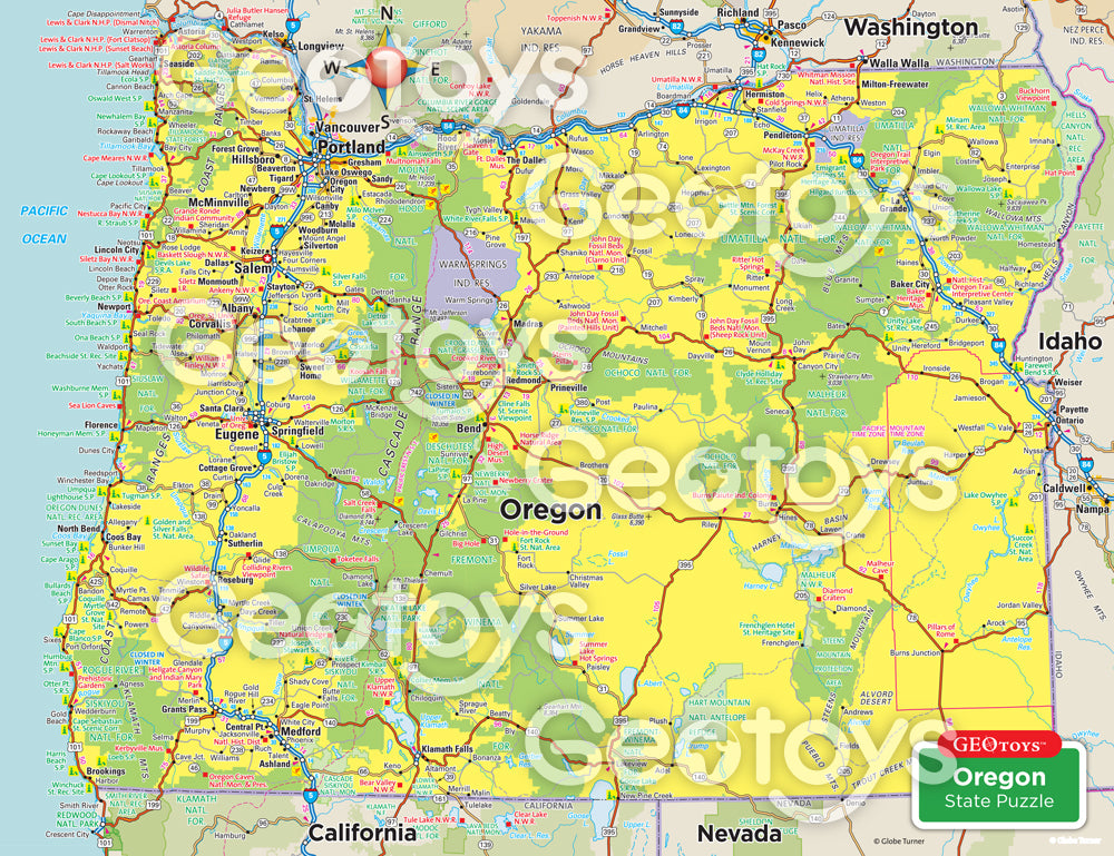 - ACCURATE AND DETAILED MAPS: This puzzle takes you deep inside Oregon, with markings for major highways, parks, and landmarks.