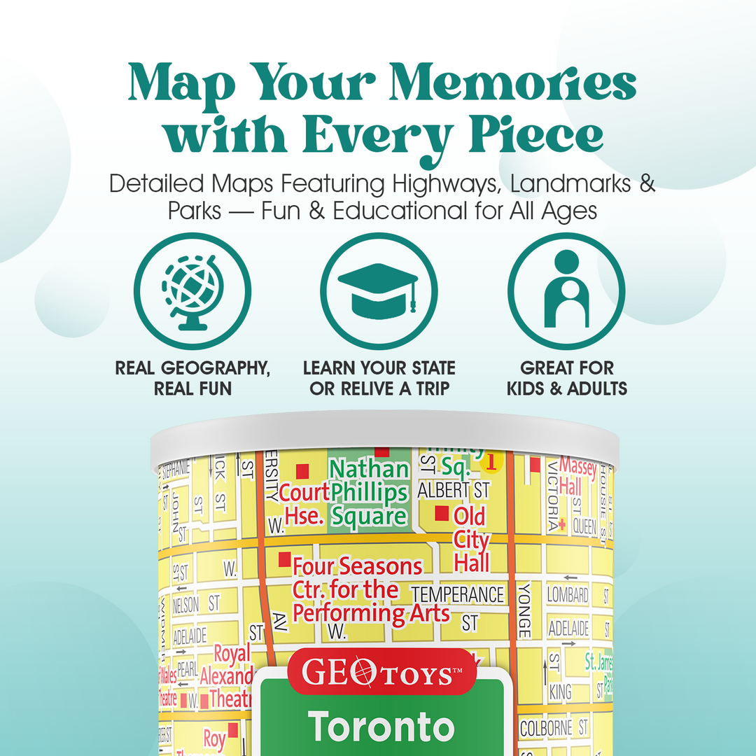 - FUN 100-PIECE PUZZLES: Our fun 100-piece puzzles give you a whole new perspective on your favorite cities, states and even the USA and Solar System.