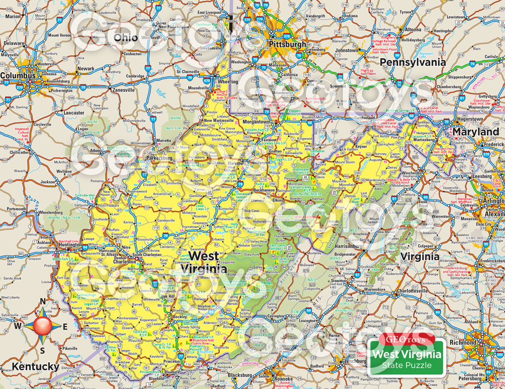 - ACCURATE AND DETAILED MAPS: This puzzle takes you deep inside West Virginia, with markings for major highways, parks, and landmarks.