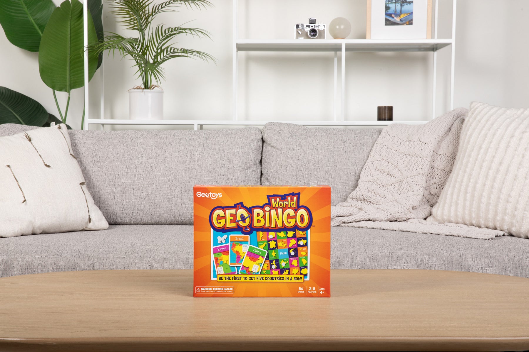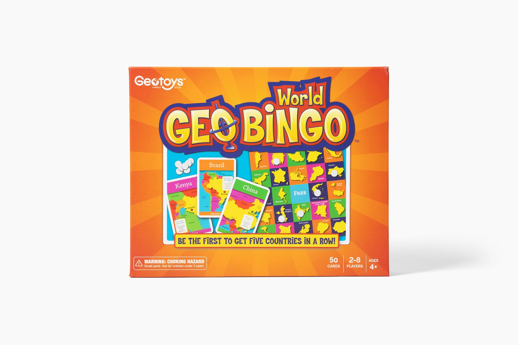 - CLASSIC, FUN & EASY TO PLAY: GeoBingo is a bingo game for kids to help them learn geography in a classic and fun way! Flip a bingo card from the pile of bingo cards, put a bingo chip on your board if you have a match, and keep watching your board. Yell BINGO! when you get five countries in a row. Kids will love this exciting educational card game.