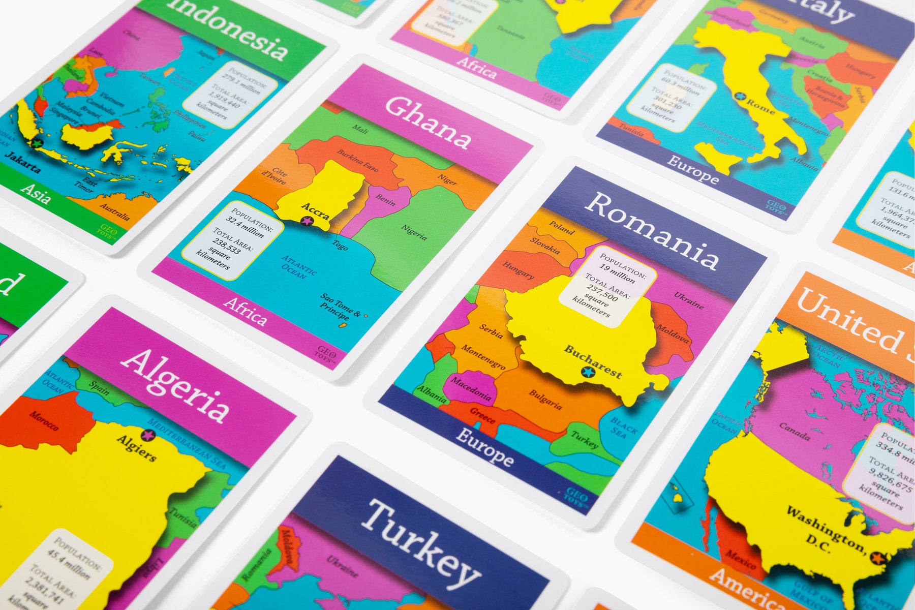 - SKILL-BUILDING: At Geotoys, we are dedicated to creating educational and fun playing cards, fostering a love for geography through our kids bingo game set. Aside from helping your kids learn geography using our bingo game cards, our USA & World geography games also help them develop new skills and vocabulary.