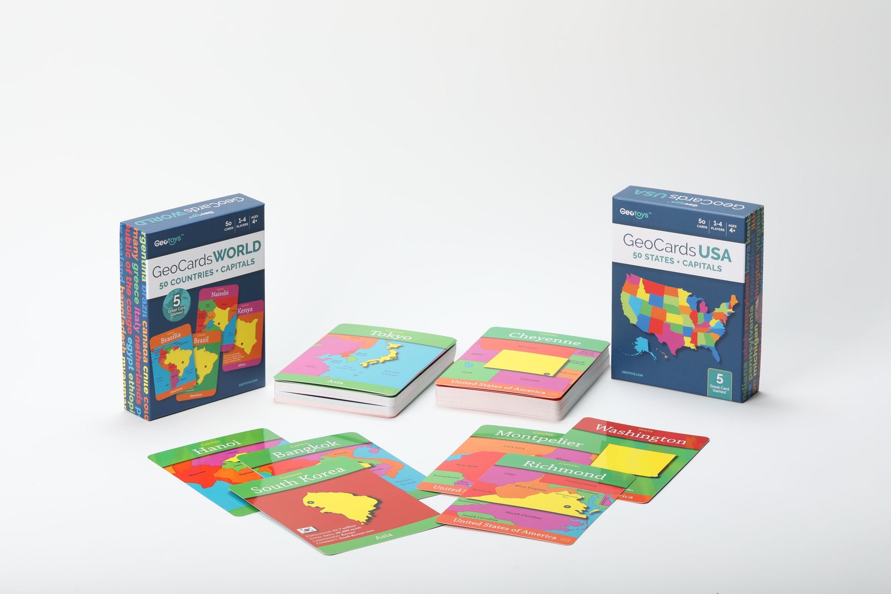 - SKILL-BUILDING FUN: At GeoToys, we create educational and fun playing cards and geography toys flashcards, including countries of the world flashcards and USA states and capitals game cards. Our geography flash cards help kids build skills. Purchase our educational card games today and expand your kids vocabulary through exciting learning games.
