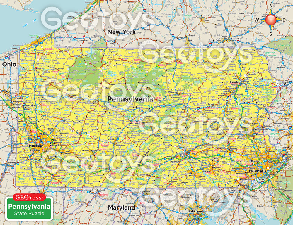 - ACCURATE AND DETAILED MAPS: This puzzle takes you deep inside Pennsylvania, with markings for major highways, parks, and landmarks.